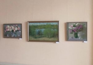 Преподаватели нашей школы представили на выставку свои работы: Елена Владимировна работу «Долгая зима», Александр Юрьевич — два произведения — «Милосердная сестра» и «Поле».